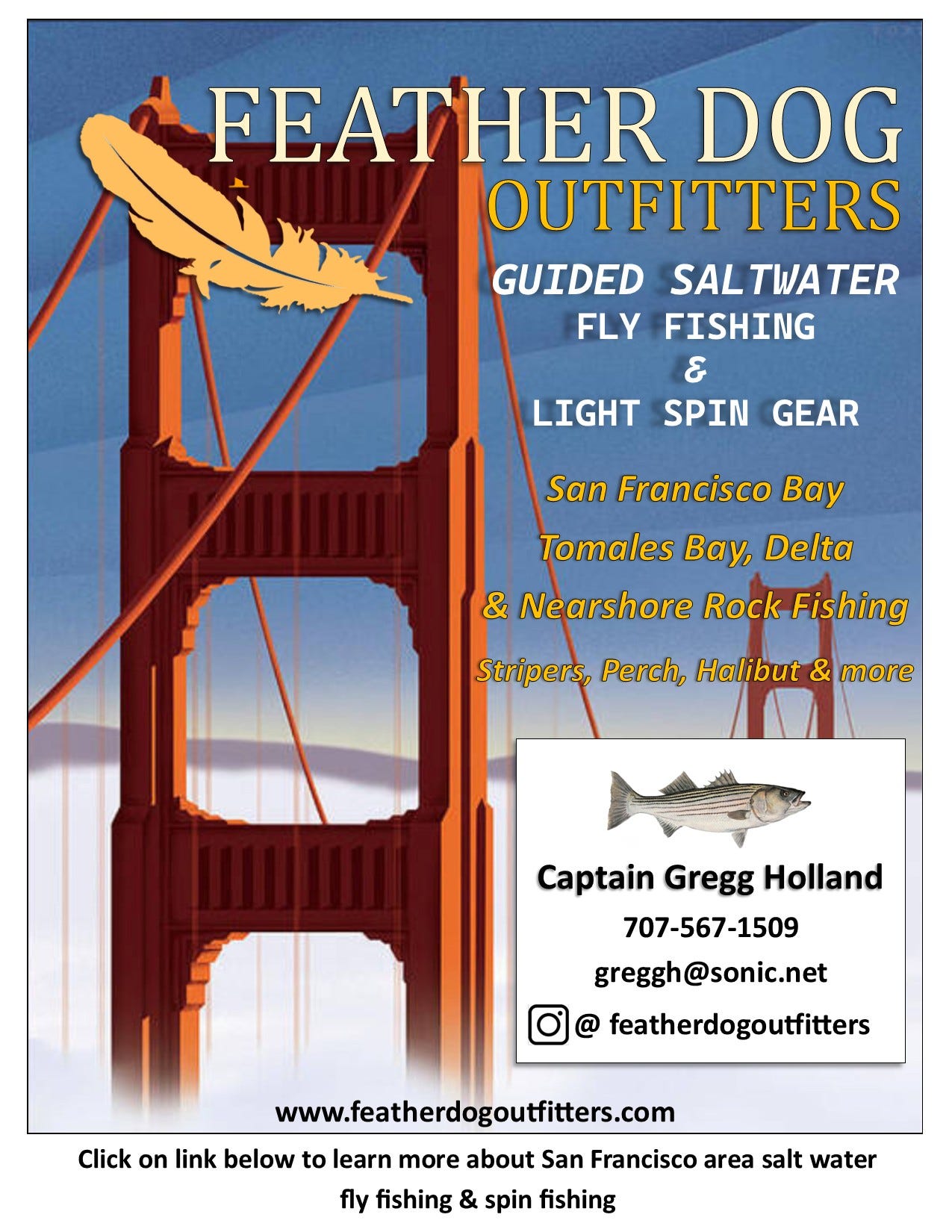I would like to welcome Capt. Gregg Holland (see ad above) as our newest sponsor of www.CaliforniaFlyFishingReports. He is one of the only fly fishing and waterfowl guides on the San Francisco Bay. Imagine catching a twenty-pound Striper or shooting a limit of ducks in sight of the Golden Gate!