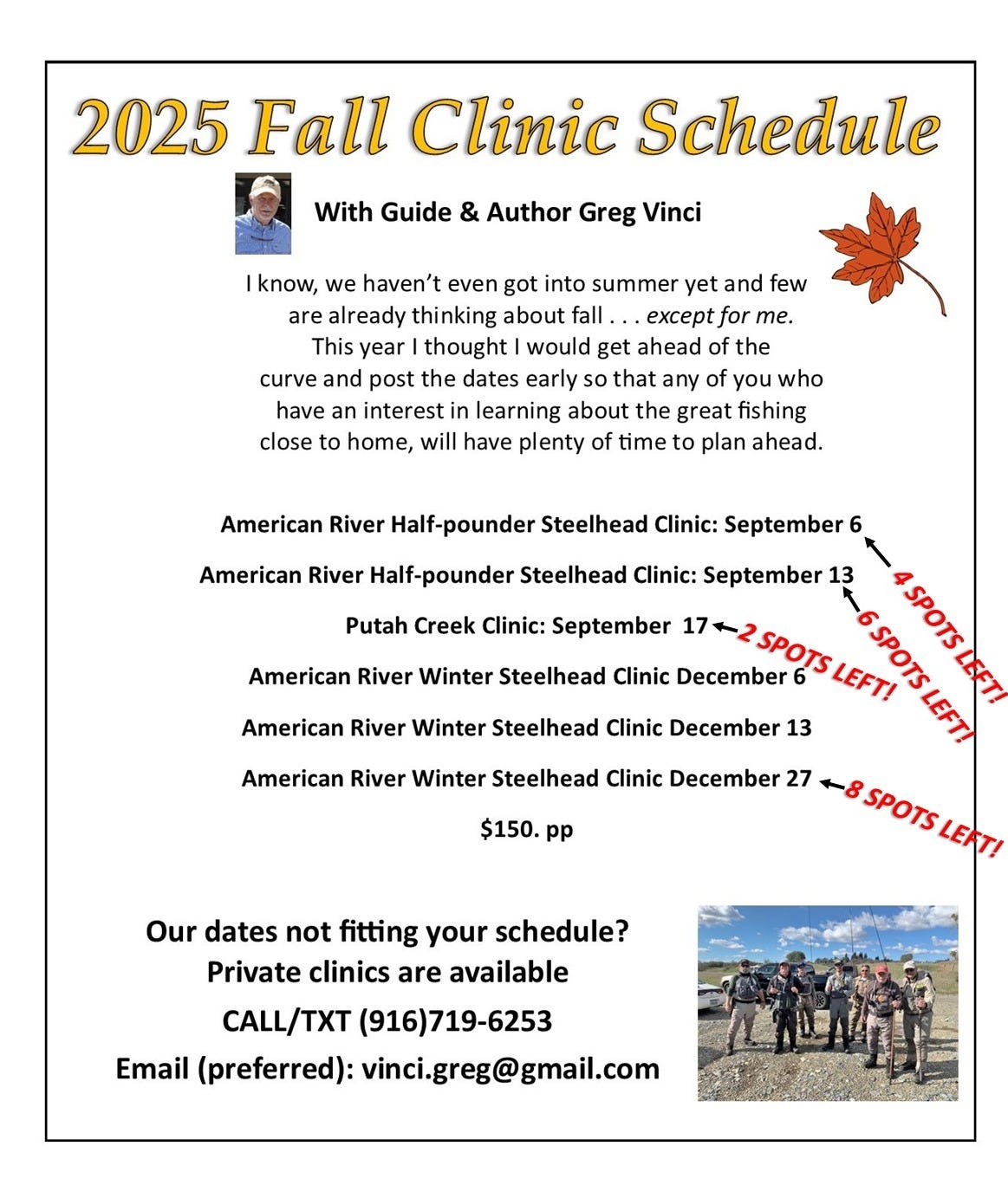 For more information, log on to https://www.californiaflyfishingreports.com/clinics-greg